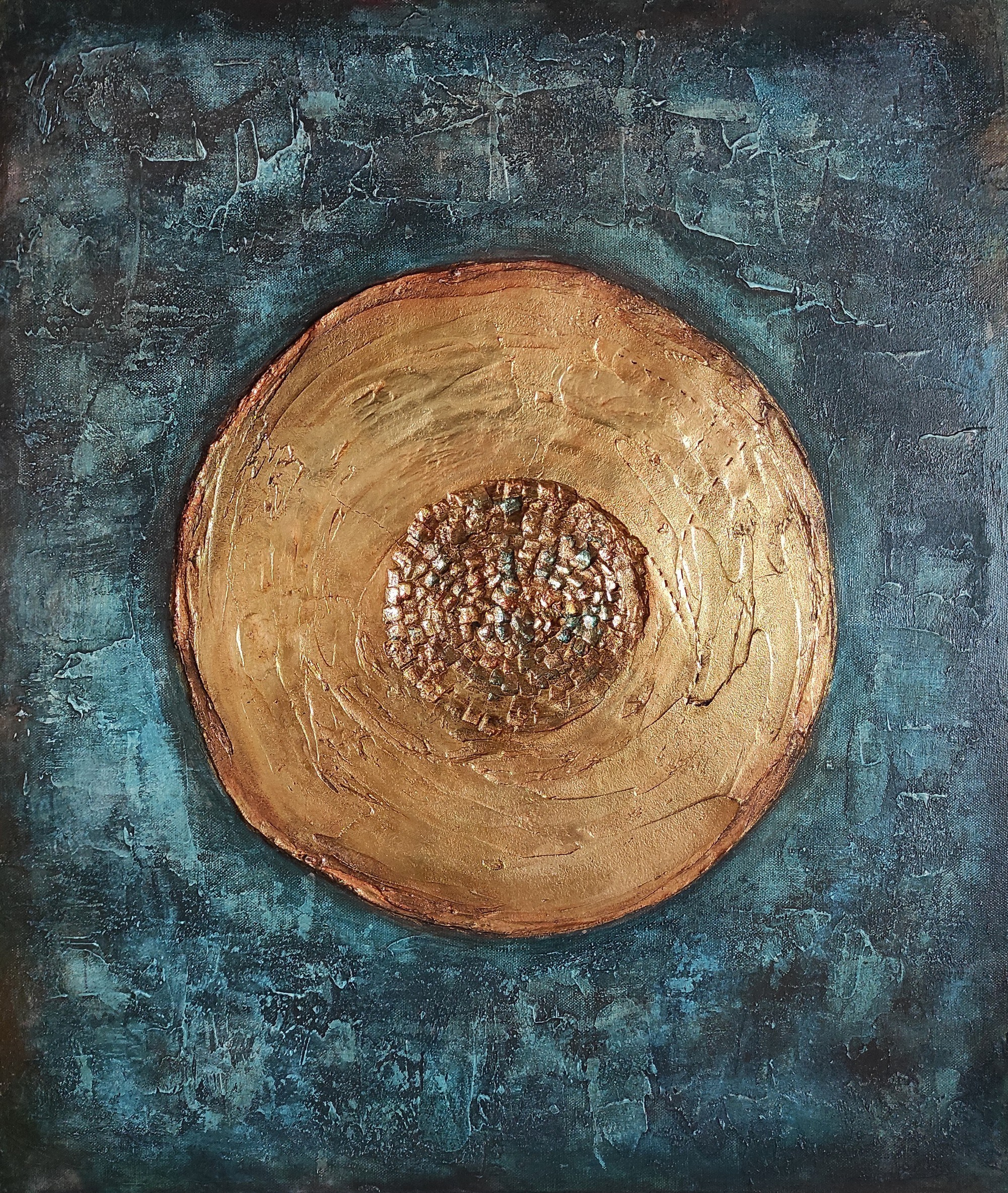 Холст 70×60 см, акрил, текстурная паста, листовая поталь, 2021