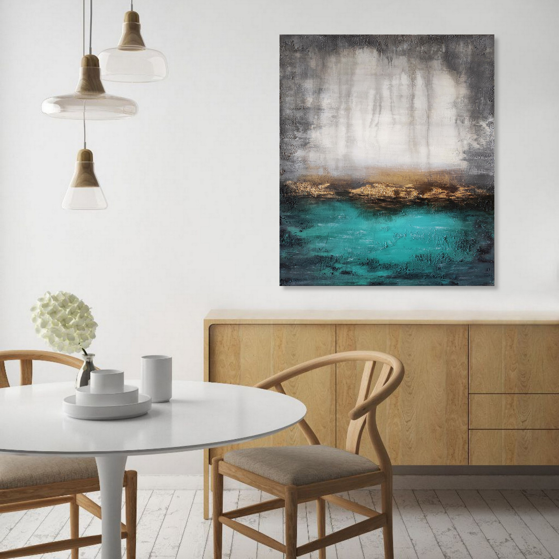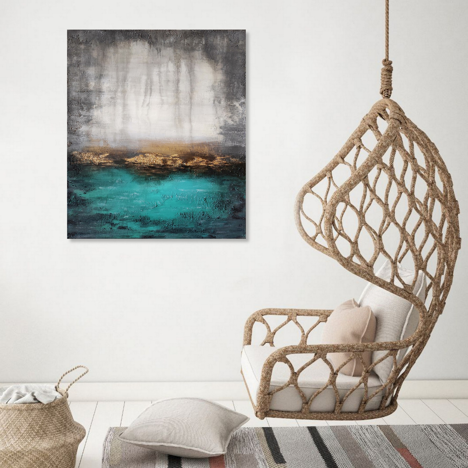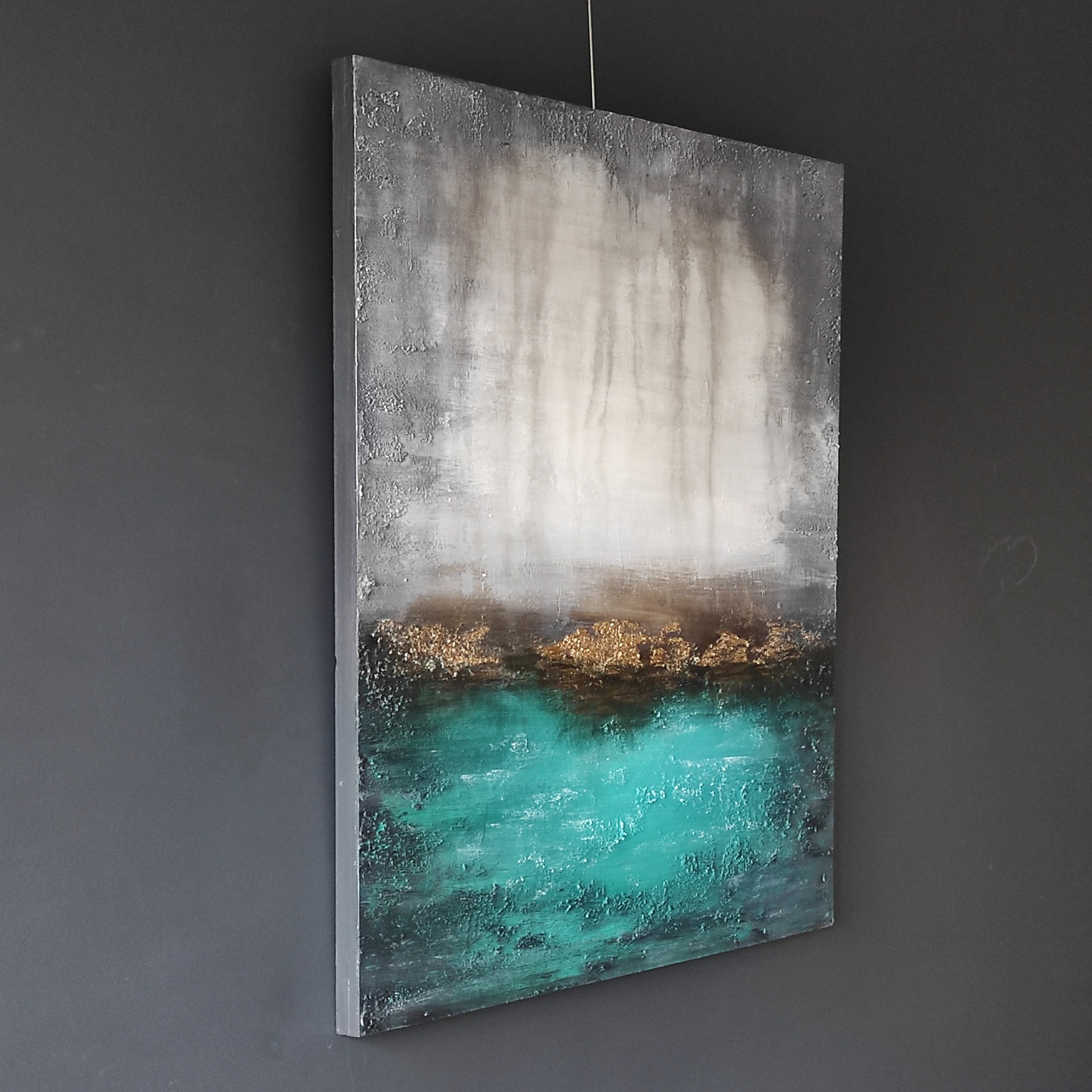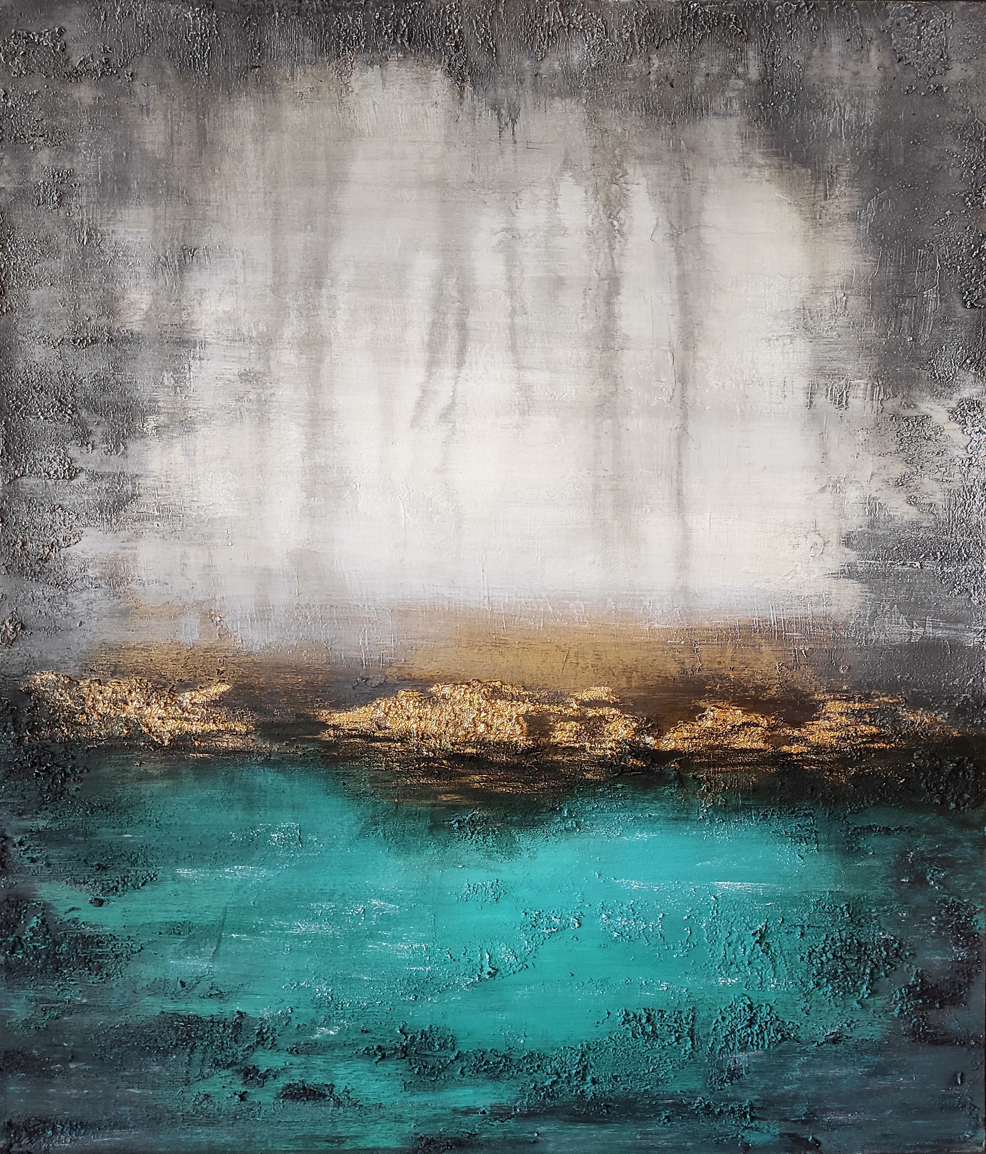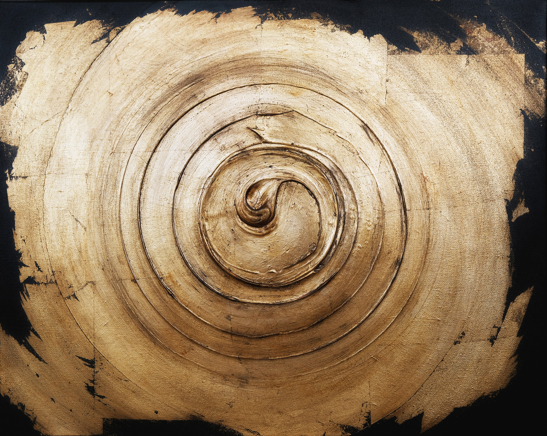 Холст 50×40 см, акрил, текстурная паста, листовая поталь, 2021