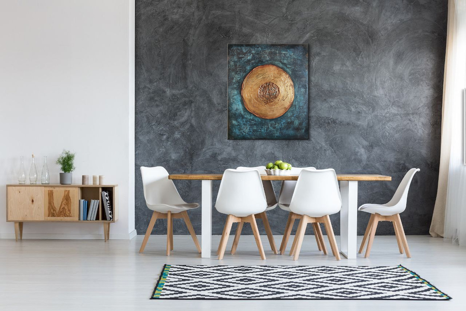 Материал: холст 70 × 60, акрил, текстурная паста, листовая золотая поталь