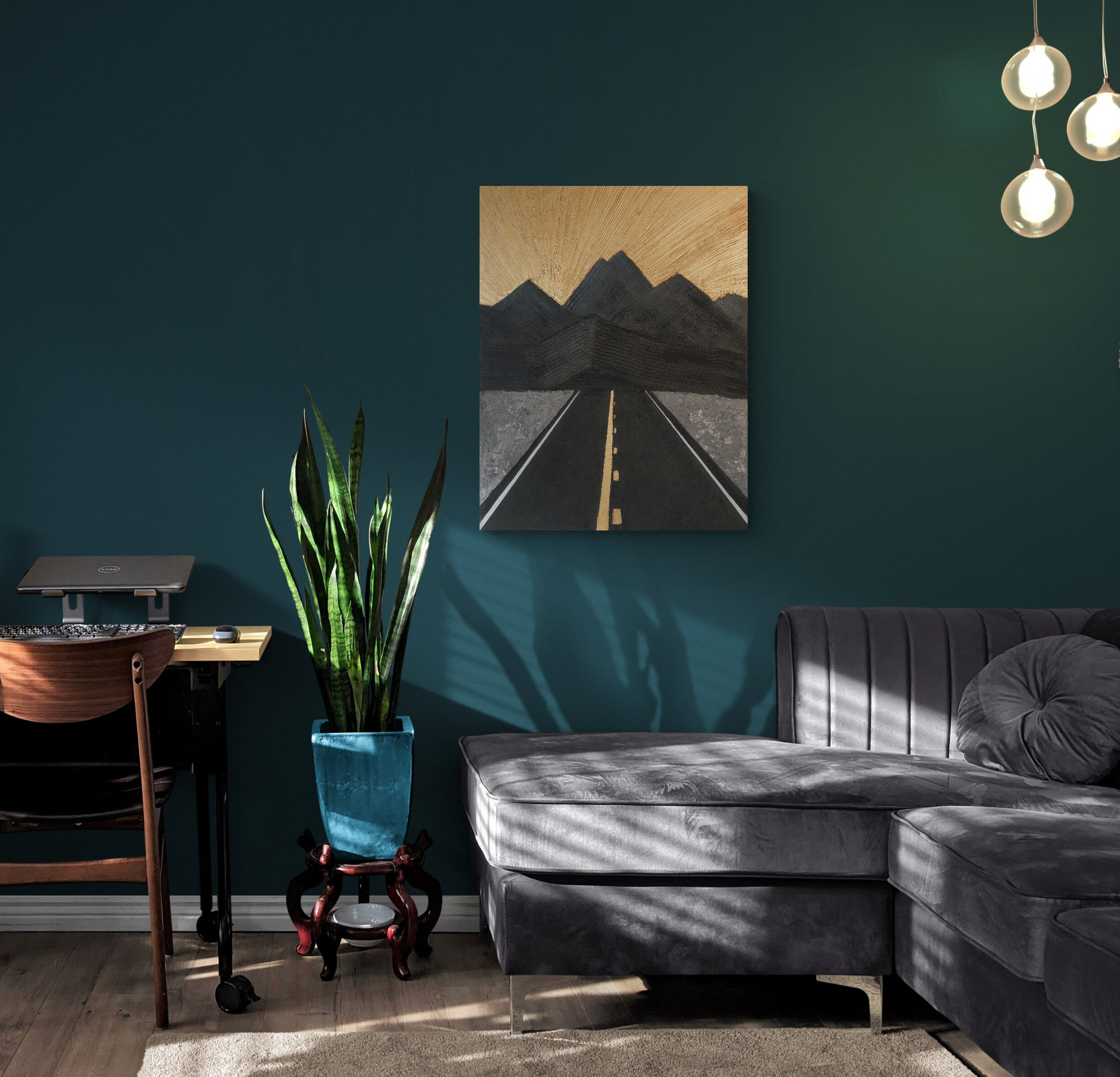 Деревянная основа 70×60 см, акрил, текстурная паста, листовая поталь, 2021