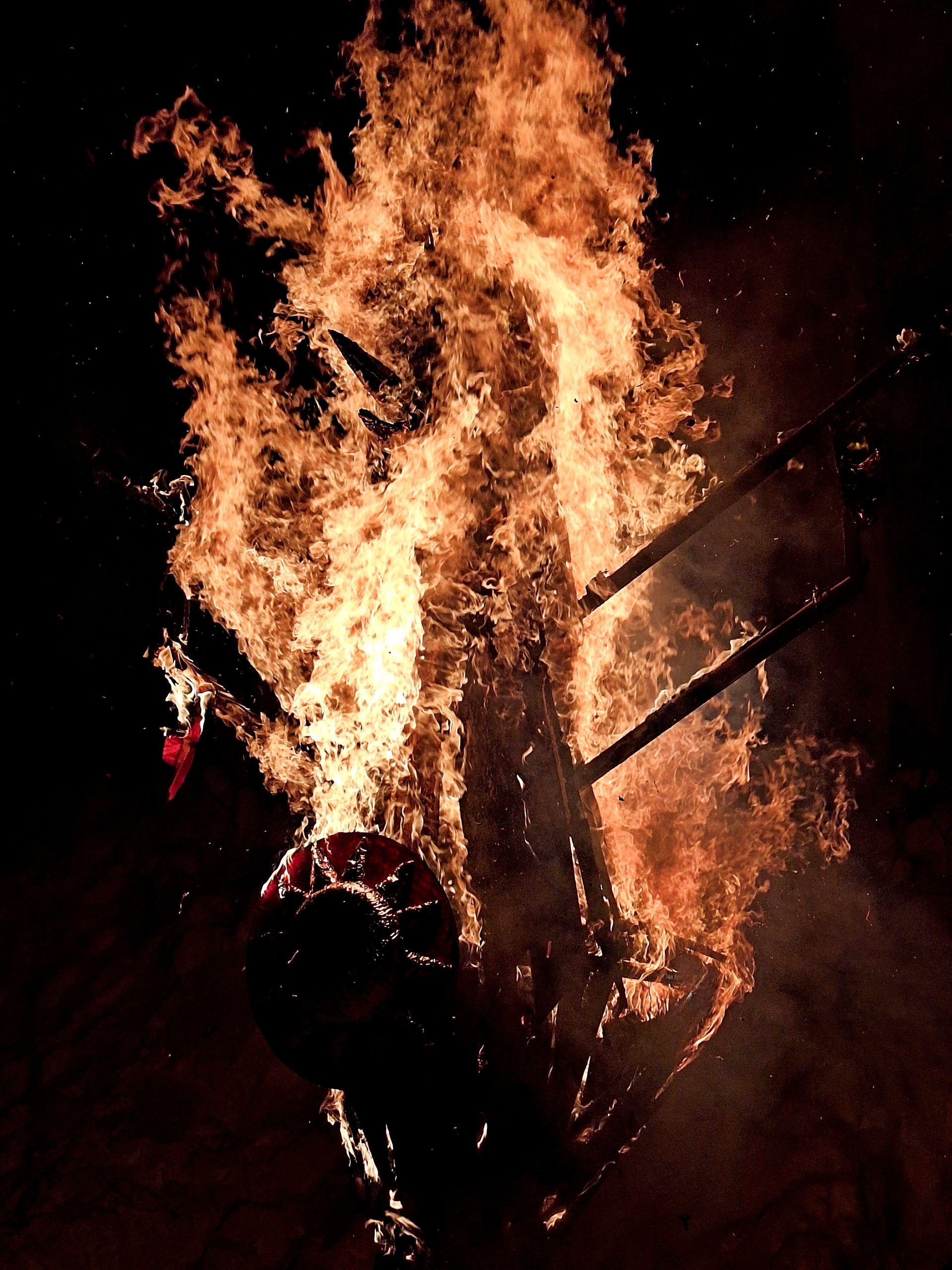 Пламя охватило крылья, голову, только солнце на груди долго оставалось нетронутым. Горел он ярко, жарко и величественно. Мы смотрели как наше детище превращается в пепел, а всё плохое уносится в небо с дымом.